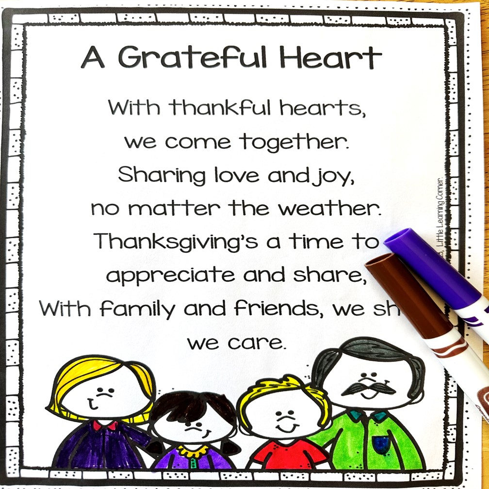 Assist your students in creating a brief poem expressing their gratitude. Beginners may begin with a straightforward acrostic or shape poem, while more proficient students can compose their own limericks or sonnets!
