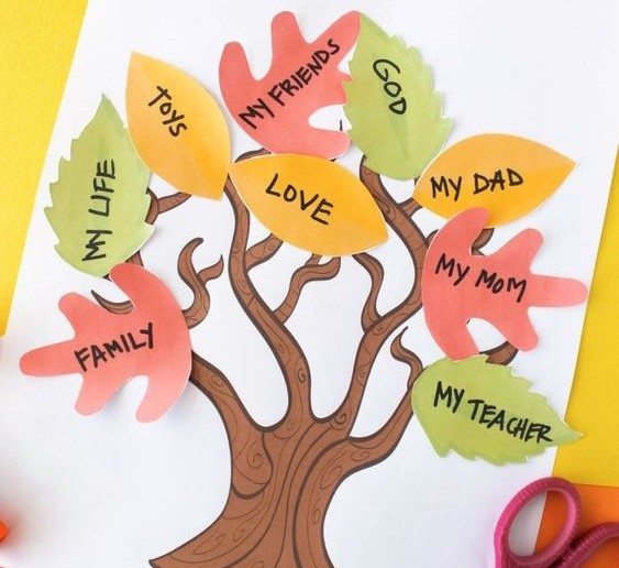 For your more advanced students, create a tree using construction paper or on your virtual whiteboard. Guide them in expressing their gratitude by writing down things they are thankful for on the leaves.